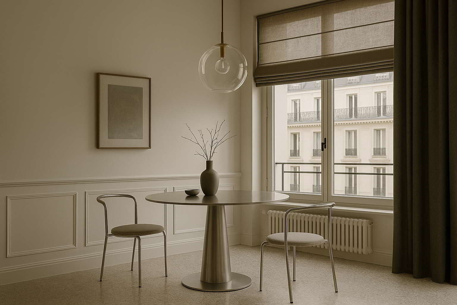 zasłonami. Stworzenie „naturalnej ściany” z rolet rzymskich i
